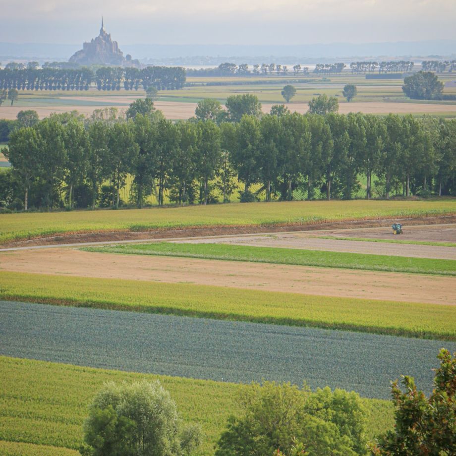 Traversée des polders, terres fertiles gagnées sur la mer au 19ème siècle. S’étend ainsi face à vous l’immensité du paysage, paradis pour les moutons de « pré-salé » que seules les cabanes surélevées des vieux pêcheurs et les gabions des chasseurs viennent perturber. L’itinéraire vous conduit au pied des anciennes falaises de Roz-sur-Couesnon dominant les polders.